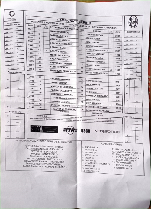 CITTADELLA VIS MODENA-CREMA: 2-1