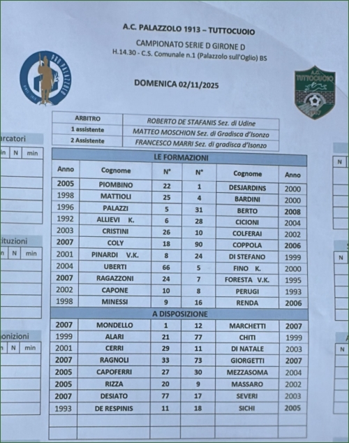 PRO PALAZZOLO-TUTTOCUOIO: 1-1