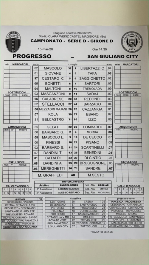 PROGRESSO-SANGIULIANO CITY: 0-1