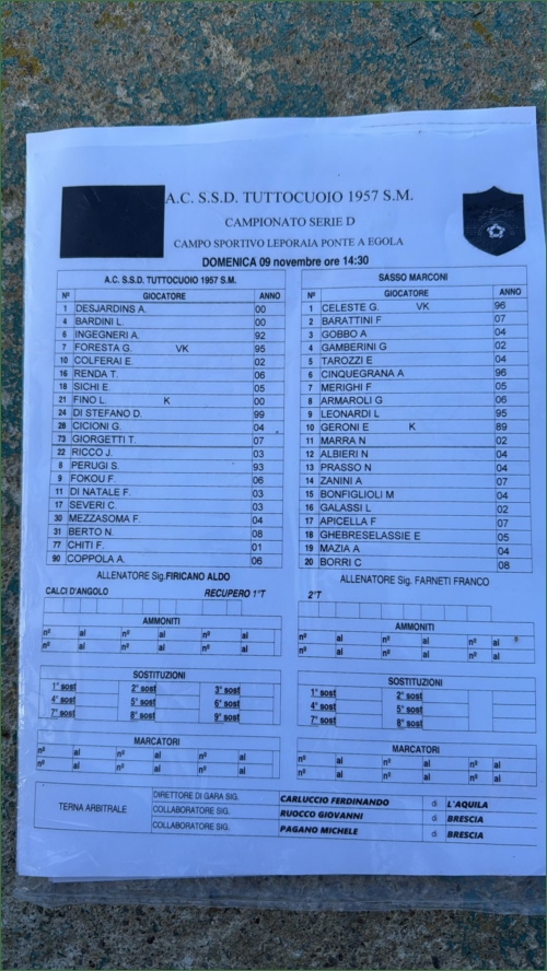 TUTTOCUOIO-SASSO MARCONI: 0-1