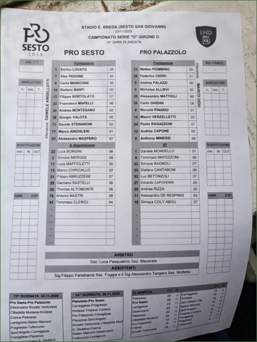 PRO SESTO-PRO PALAZZOLO: 1-0