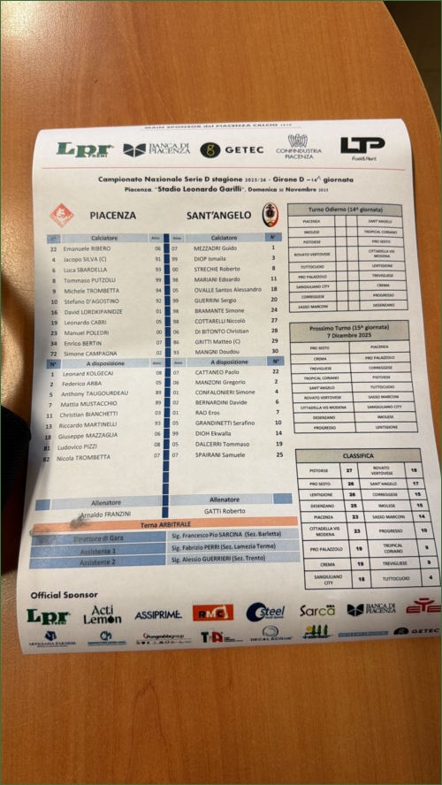 PIACENZA-SANT'ANGELO: 2-0