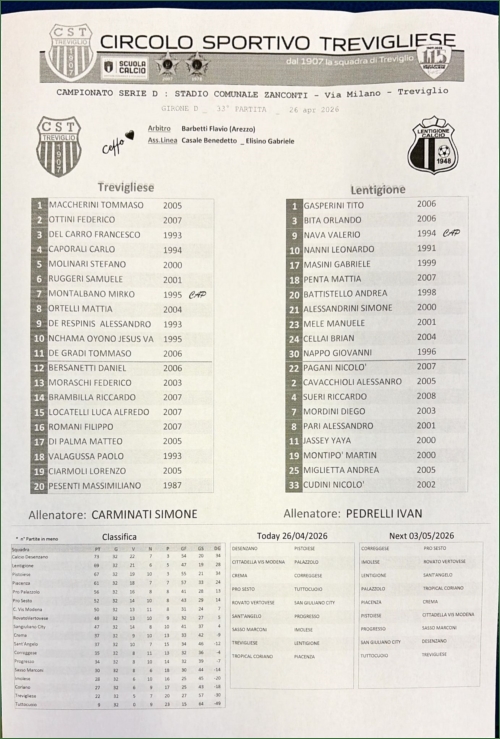 TREVIGLIESE-LENTIGIONE: 1-2