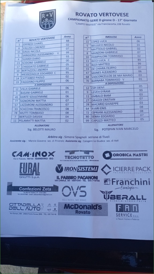 ROVATO VERTOVESE-IMOLESE: 2-0
