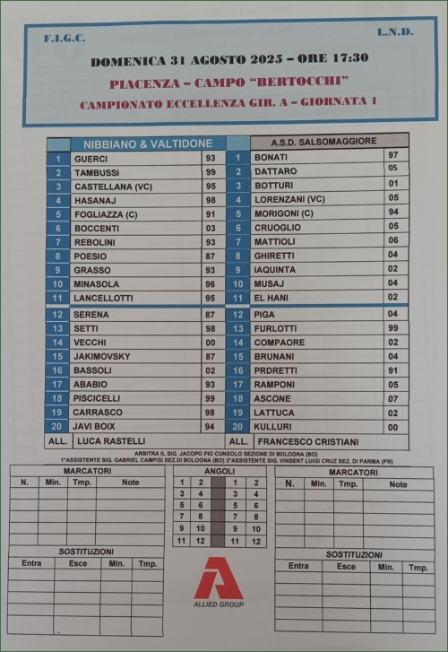 NIBBIANO & VALTIDONE-SALSOMAGGIORE : 3-0