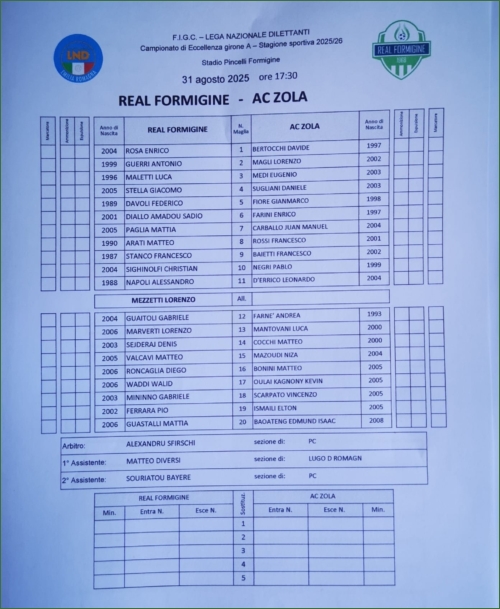 REAL FORMIGINE-CALCIO ZOLA: 0-1