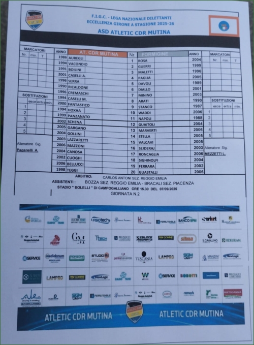ATLETIC C.D.R. MUTINA-REAL FORMIGINE: 3-0