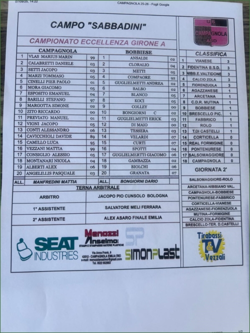 CAMPAGNOLA-BOBBIESE: 0-2