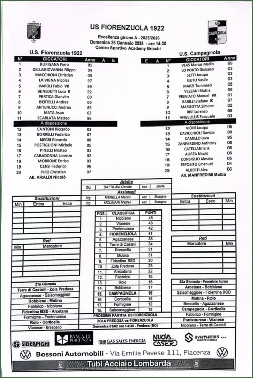 FIORENZUOLA-CAMPAGNOLA: 5-2