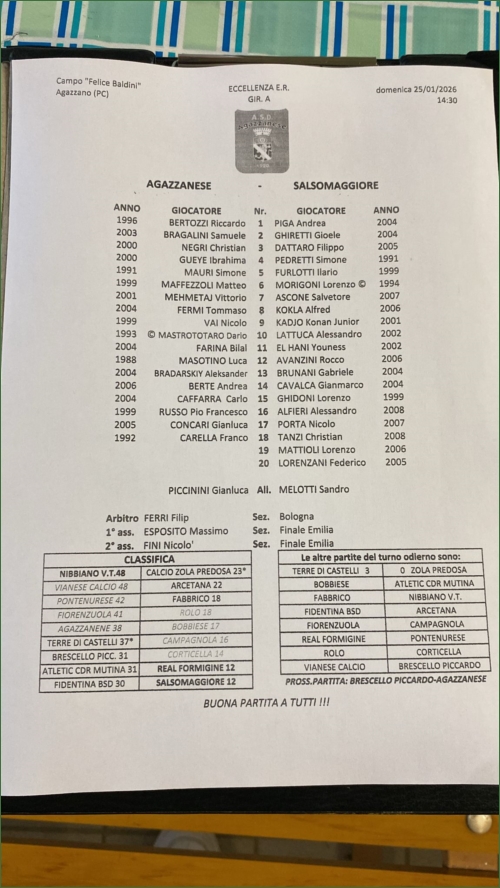 AGAZZANESE-SALSOMAGGIORE : 2-0
