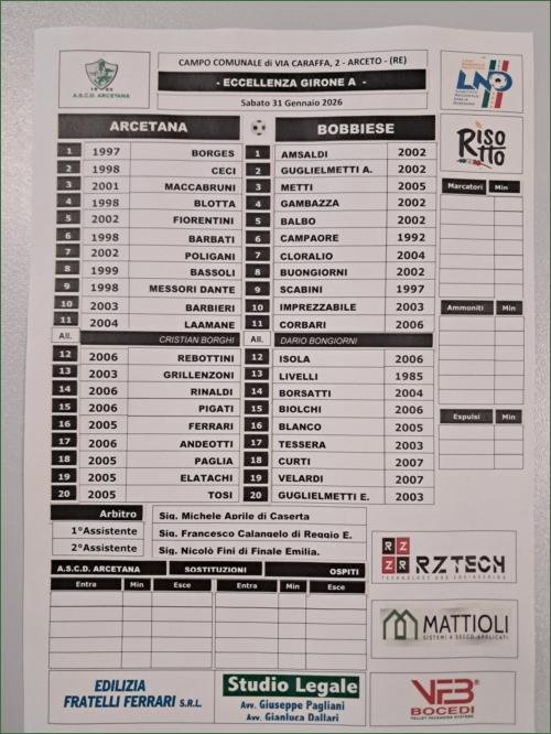 ARCETANA-BOBBIESE: 1-1