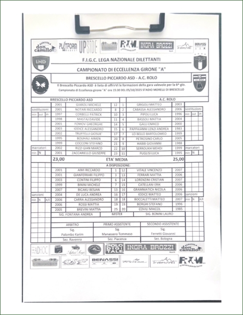 BRESCELLO PICCARDO-ROLO: 3-1