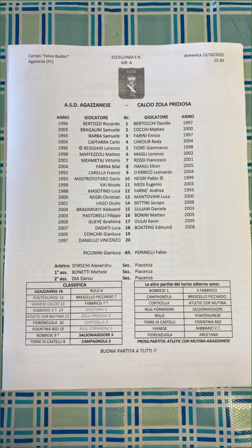 AGAZZANESE-CALCIO ZOLA: 1-0
