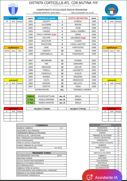 CORTICELLA-ATLETIC C.D.R. MUTINA: 1-2