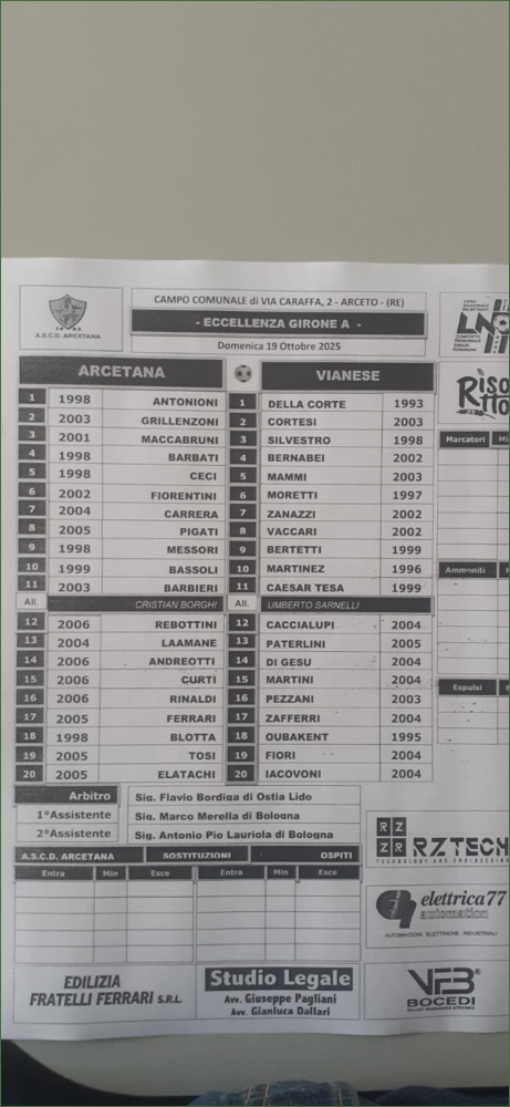 ARCETANA-VIANESE: 0-3