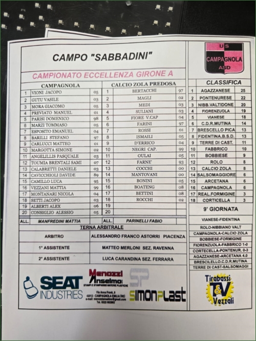 CAMPAGNOLA-CALCIO ZOLA: 1-2