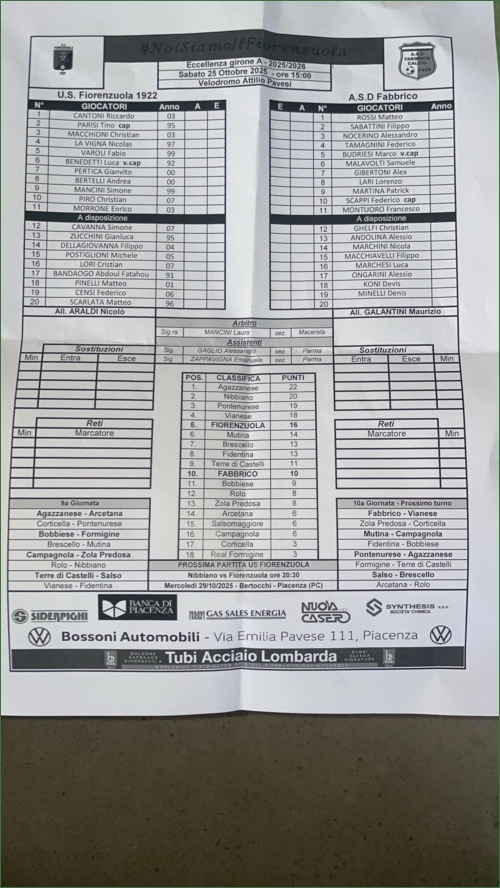 FIORENZUOLA-FABBRICO: 1-0