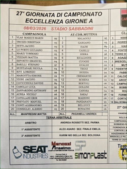 CAMPAGNOLA-ATLETIC C.D.R. MUTINA: 0-2
