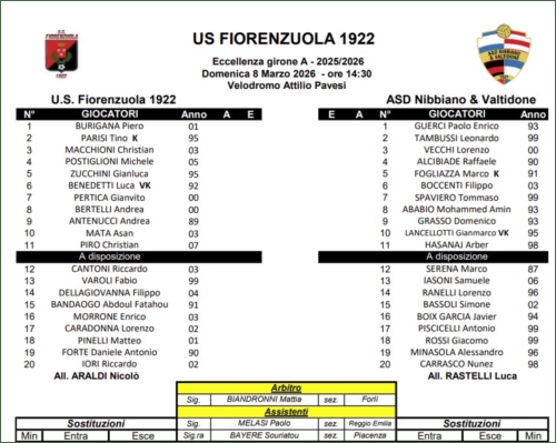 FIORENZUOLA-NIBBIANO & VALTIDONE: 1-2
