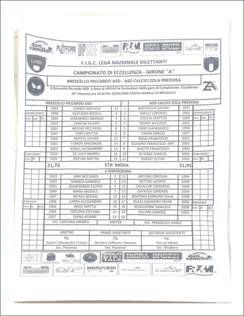 BRESCELLO PICCARDO-CALCIO ZOLA: 3-0