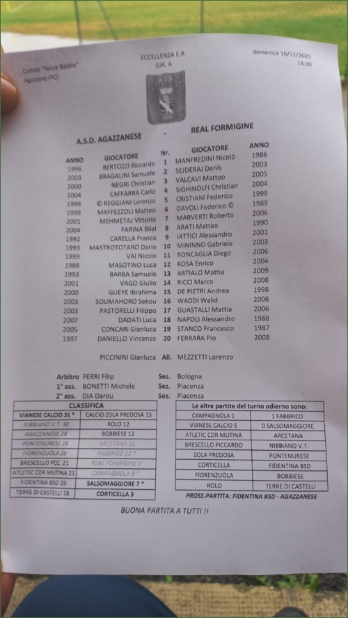 AGAZZANESE-REAL FORMIGINE: 1-0