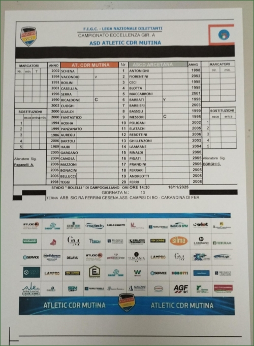 ATLETIC C.D.R. MUTINA-ARCETANA: 1-1