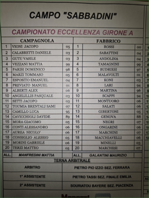 CAMPAGNOLA-FABBRICO: 1-1