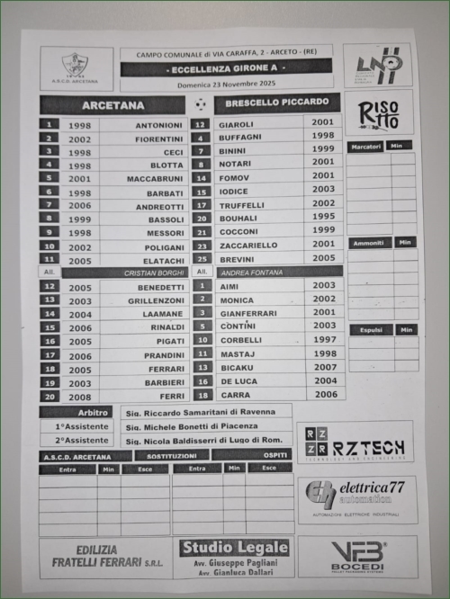 ARCETANA-BRESCELLO PICCARDO: 0-4