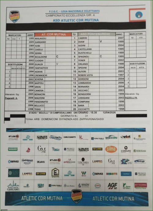 ATLETIC C.D.R. MUTINA-PONTENURESE: 3-4