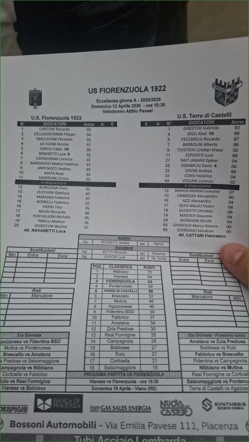 FIORENZUOLA-TERRE DI CASTELLI 1907: 1-1