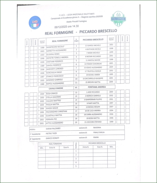 REAL FORMIGINE-BRESCELLO PICCARDO: 0-1