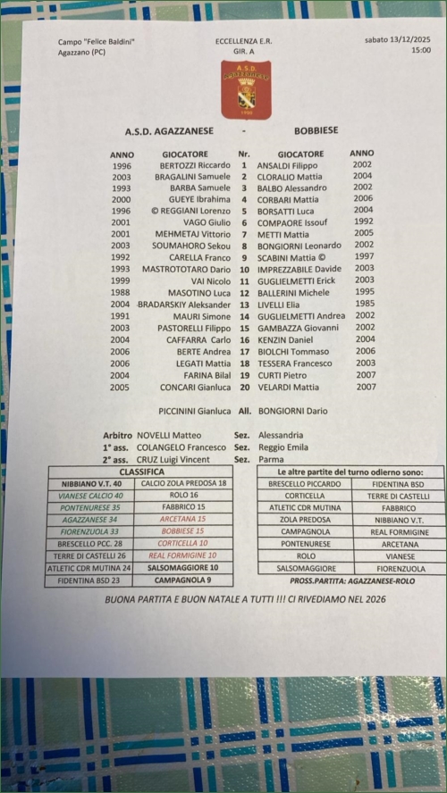 AGAZZANESE-BOBBIESE: 1-1