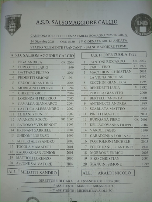 SALSOMAGGIORE -FIORENZUOLA: 0-1