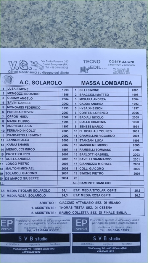 SOLAROLO-MASSA LOMBARDA: 0-0