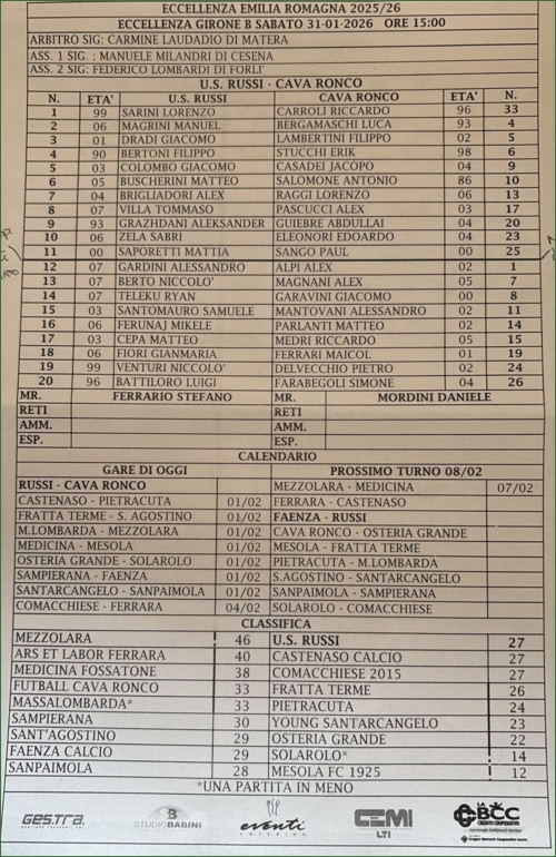 RUSSI-FUTBALL CAVA RONCO: 2-0