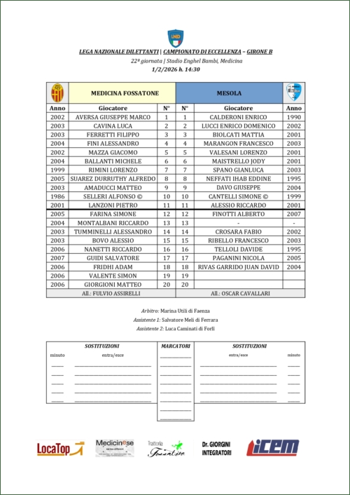 MEDICINA FOSSATONE-MESOLA: 3-1