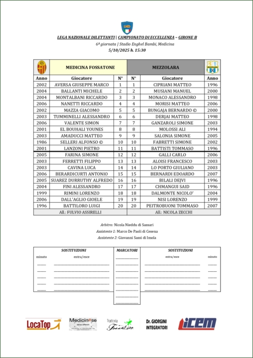 MEDICINA FOSSATONE-MEZZOLARA: 1-0