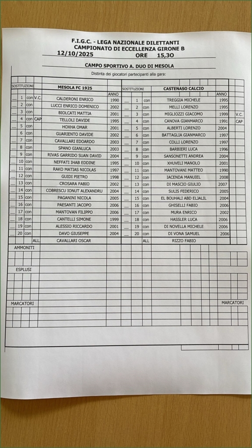 MESOLA-CASTENASO: 0-0