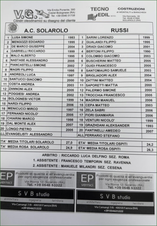 SOLAROLO-RUSSI: 1-1