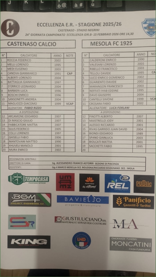 CASTENASO-MESOLA: 2-0
