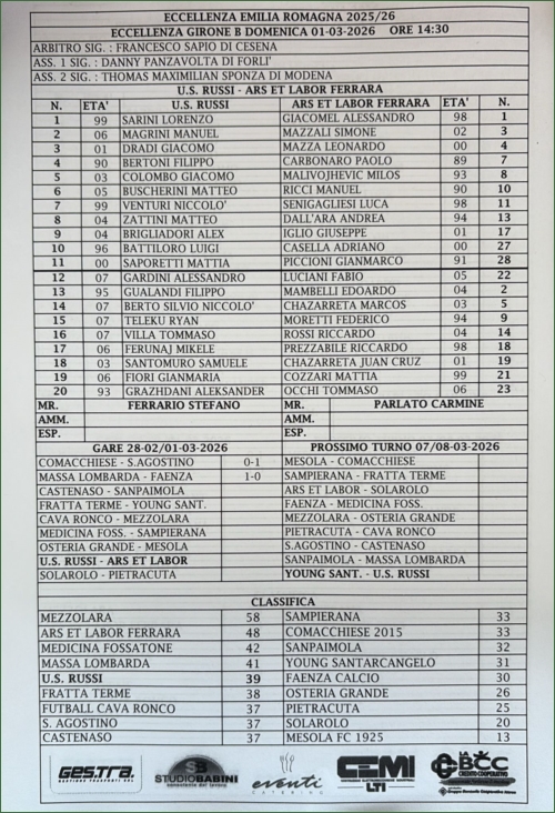 RUSSI-ARS ET LABOR FERRARA: 0-1