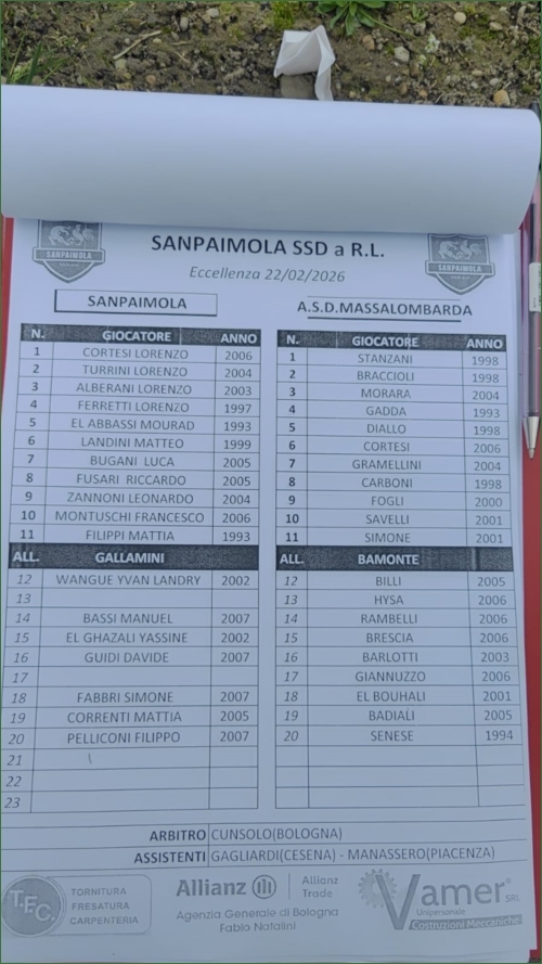 SANPAIMOLA-MASSA LOMBARDA: 1-0