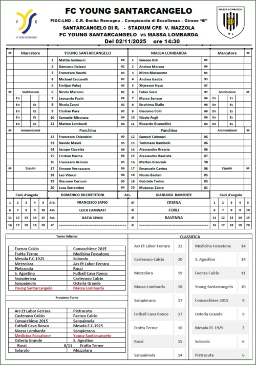 YOUNG SANTARCANGELO-MASSA LOMBARDA: 1-1