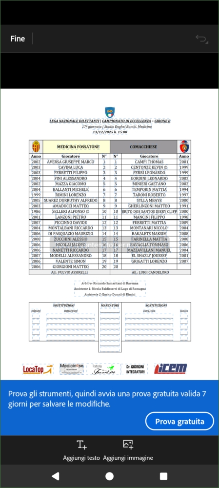 MEDICINA FOSSATONE-COMACCHIESE: 1-0