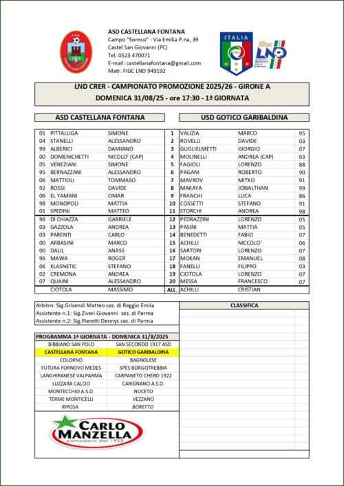 CASTELLANA FONTANA-GOTICO GARIBALDINA: 0-0