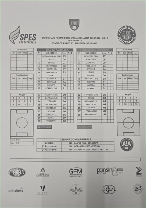 SPES BORGOTREBBIA-FUTURA FORNOVO MEDESANO: 1-1
