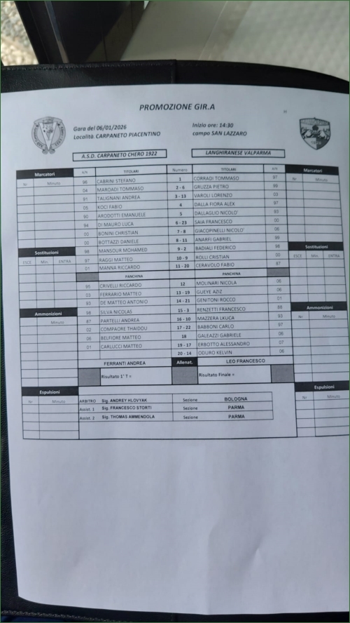 CARPANETO CHERO 1922-LANGHIRANESE VALPARMA: 0-1