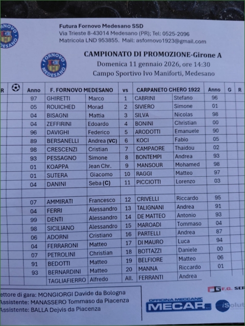 FUTURA FORNOVO MEDESANO-CARPANETO CHERO 1922: 3-2