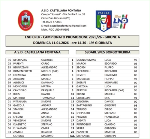 CASTELLANA FONTANA-SPES BORGOTREBBIA: 2-0