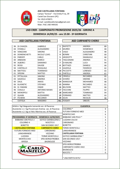 CASTELLANA FONTANA-CARPANETO CHERO 1922: 2-0